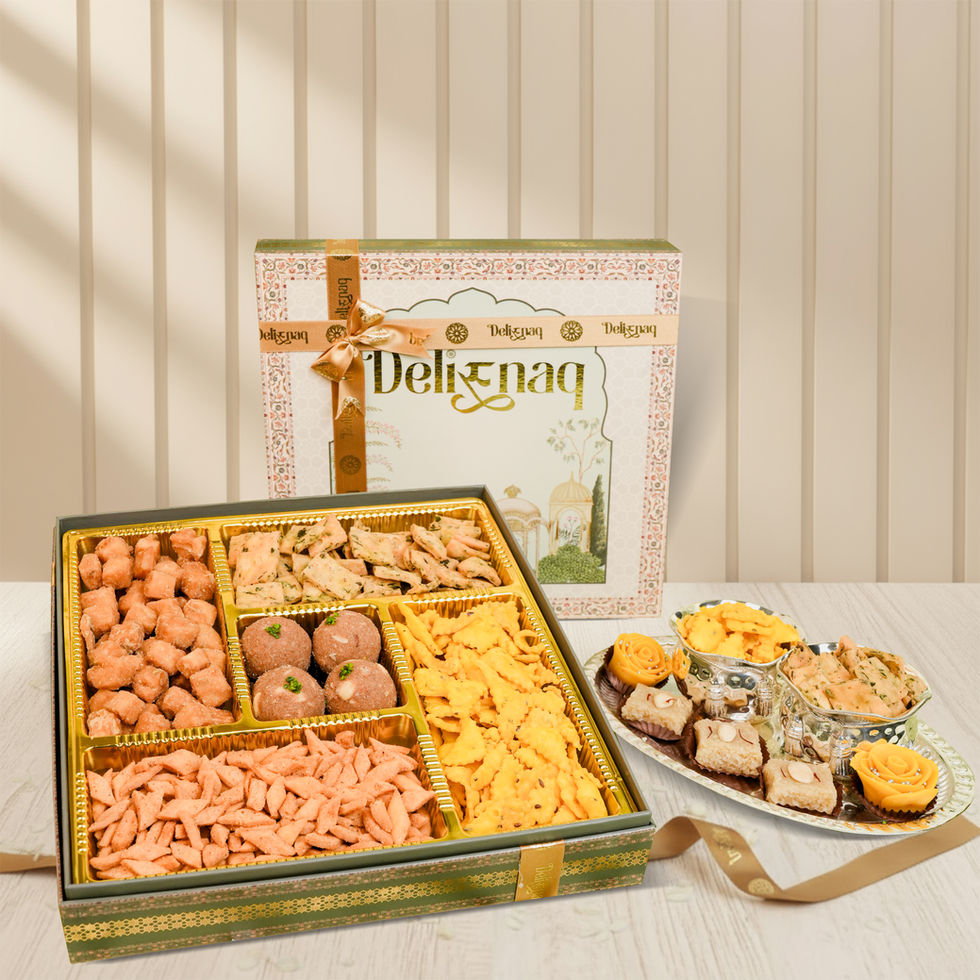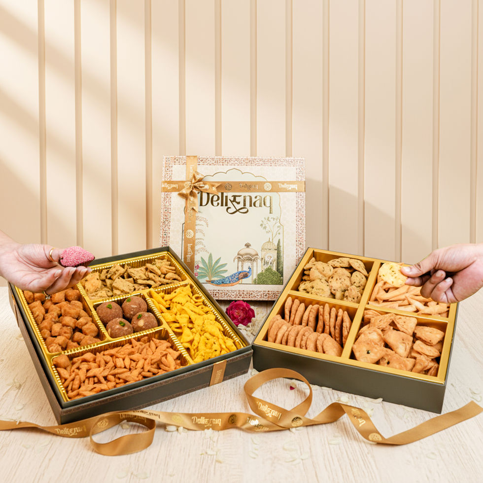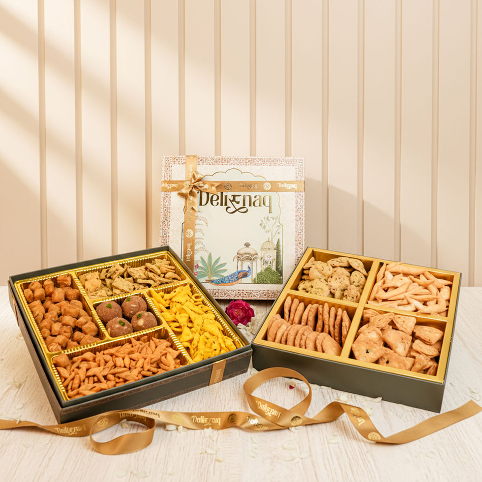 Whether you choose the mixed box or the all-savoury selection, the Delisnaq Taj Savouries Box promises quality, variety, and a taste of authentic festive flavour.